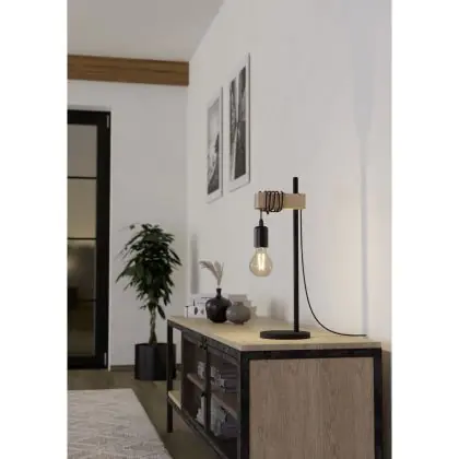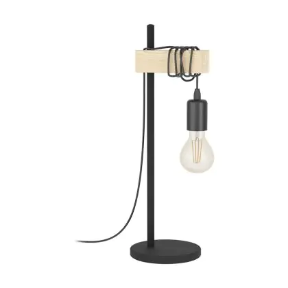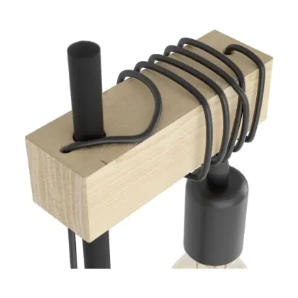 Eglo Lampe De Chevet Townshend Acier Bois Noir Brun | IP20 - Convient pour 1x E27