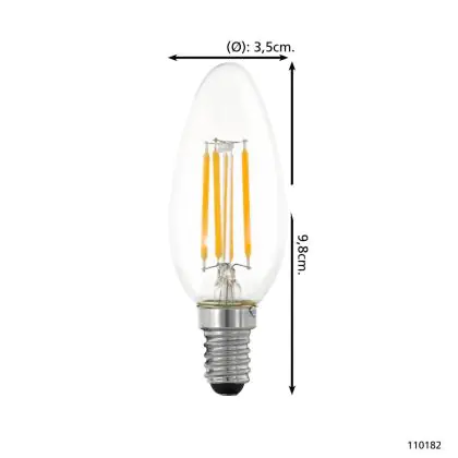 Description Eglo LED Bougie E14 Filament Claire 4.5W 470lm - 827 Blanc Très Chaud | Dimmable - Équivalent 40W
