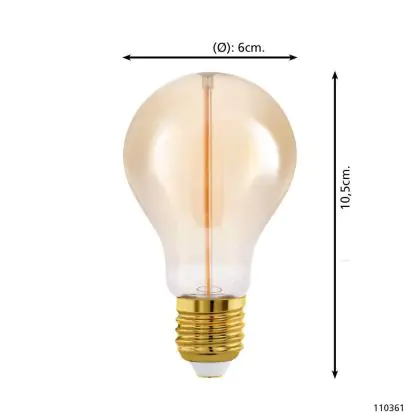 Description Eglo LED Poire E27 Filament Ambre 2W 100lm - 818 Blanc Très Chaud | Dimmable - Équivalent 15W