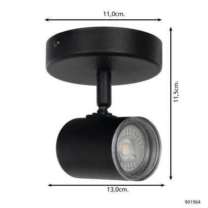 Eglo Plafond Spot Consuma 1 Acier Noir | Convient pour GU10