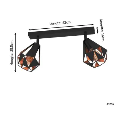 Eglo Plafonnier Carlton 7 Acier Noir Cuivre | IP20 - Convient pour 2x E27