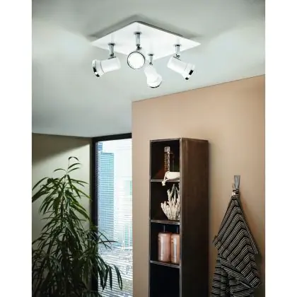 Eglo Plafonnier Tamara 1 Acier Blanc Chrome 4x2.8W 4x250lm - 830 Blanc Chaud | IP44 - Incl. 4x GU10