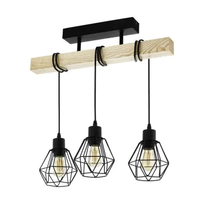 Eglo Plafonnier Townshend 5 Acier Bois Noir | IP20 - Convient pour 3x E27