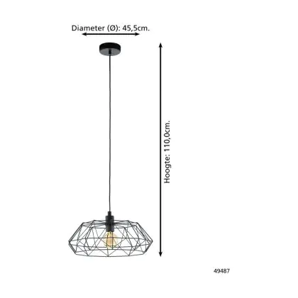 Eglo Suspension Luminaire Carlton 2 Acier Noir | IP20 - Convient pour 1x E27