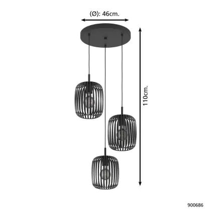 Eglo Suspension Luminaire Romazzina Acier Noir | Convient pour 3x E27