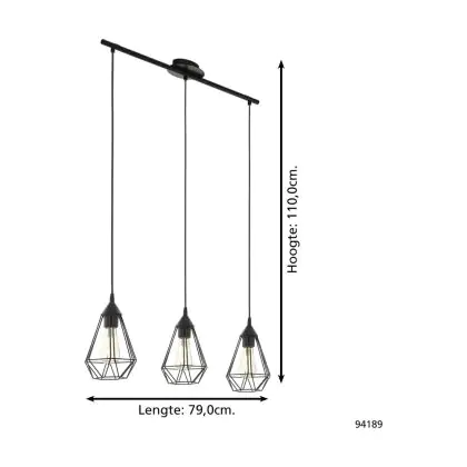 Eglo Suspension Luminaire Tarbes Acier Noir | IP20 - Convient pour 3x E27