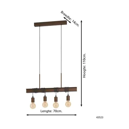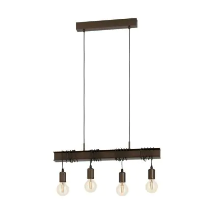 Eglo Suspension Luminaire Townshend 4 Acier Brun | IP20 - Convient pour 4x E27