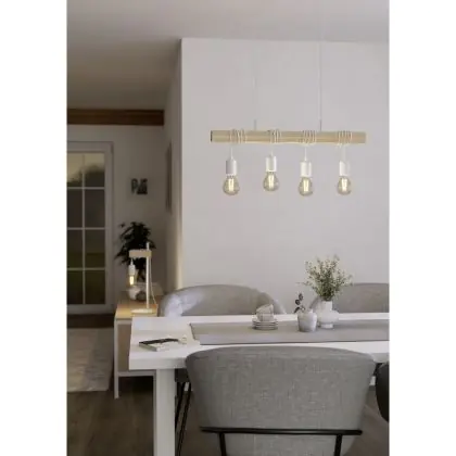 Eglo Suspension Luminaire Townshend Acier Blanc Bois | IP20 - Convient pour 4x E27