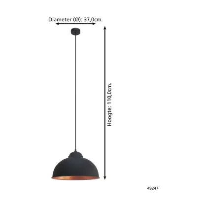 Eglo Suspension Luminaire Truro 2 Acier Noir Cuivre | IP20 - Convient pour 1x E27
