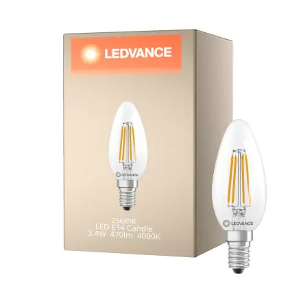 Description Ledvance Classic LED E14 Bougie Filament Claire 3.4W 470lm - 840 Blanc Froid| Équivalent 40W