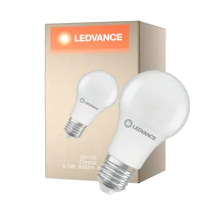Ledvance Classic LED E27 Poire Dépolie 8.5W 806lm - 865 Lumière Du Jour | Équivalent 60W