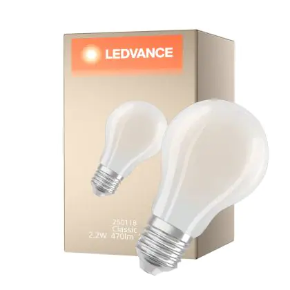 Cette ampoule Ledvance Classic LED E27 Poire Filament Dépolie 2.2W 470lm - 827 Blanc Très Chaud | Dimmable Équivalent 40W est l’alternative idéale pour la remplacement de votre ampoule classique de 40 W. La technologie LED intégrée vous offrira de nombreux avantages. Les ampoules à incandescence traditionnelles ont une durée de vie limitée. Cette alternative LED vous permettra de profiter d’un éclairage durable et fiable.
