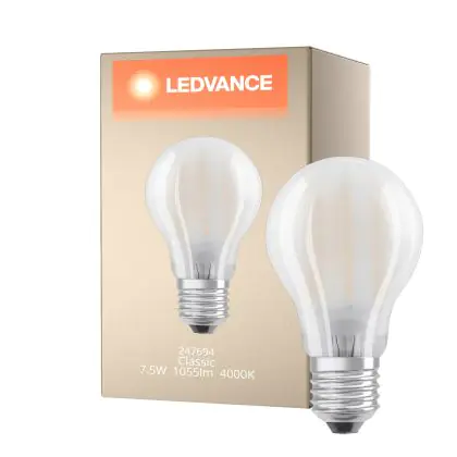 Description Ledvance Classic LED E27 Poire Filament Dépolie 7.5W 1055lm - 940 Cool white | Meilleur rendu des couleurs - Dimmable - Équivalent 75W
