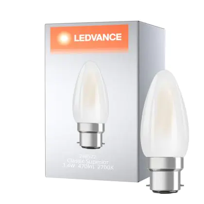 Ledvance Classic Superior LED Ampoule B22d Bougie Filament Dépolie 3.4W 470lm - 927 Blanc Très Chaud | Meilleur rendu des couleurs - Dimmable - Équivalent 40W