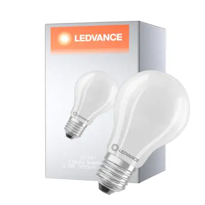 Description Ledvance Classic Superior LED Ampoule E27 Poire Filament Dépolie 5.7W 1055lm - 827 Blanc Très Chaud | Dimmable - Équivalent 75W
