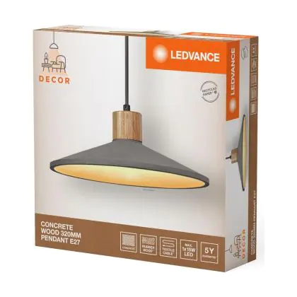Ledvance Decor Béton/Acier/Bois Suspension Luminaire 320 Foncé Gris | Convient pour E27
