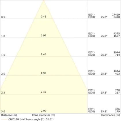 Un angle de diffusion est également appelé angle de rayonnement et indique l'angle du faisceau lumineux provenant d'une source lumineuse. Plus l'angle de diffusion en degrés (D) est petit, plus le faisceau est étroit. Vous voulez en savoir plus? Alors lisez notre blog.