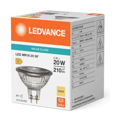 Ledvance LED MR16 P LED Réflecteur GU5.3 PAR16 2W 210lm 36d - 830 Blanc Chaud| Équivalent 20w
