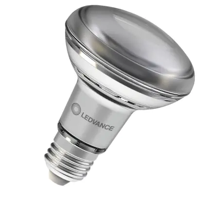 La lampe LED Ledvance Performance Spot LED E27 R80 4.9W 345lm 36D - 927 Blanc Très Chaud | Meilleur rendu des couleurs - Dimmable - Équivalent 60W avec culot E27 (Ampoule à vis standard) est le remplacement idéal des lampes à incandescence et halogènes classiques. En raison de la faible consommation d'énergie, vous économisez considérablement sur vos coûts d'énergie. Les lampes à LED Ledvance n’utilisent qu’une petite partie de la puissance (4.9 W) que les lampes à incandescence et halogènes classiques (60 W). Les lampes à LED ont une excellente classe énergétique G, ce qui signifie qu'elles sont très écologiques et peuvent être recyclées après utilisation. En raison de leur durée de vie considérable de 25000 heures, vous n’aurez pas à les changer de si tôt.