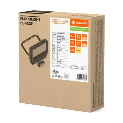 Description Ledvance Projecteur LED Aluminium Noir 41W 5500lm 100D - 830 Blanc Chaud | IP65 - Détecteur De Mouvement Et De Lumière - Symétrique