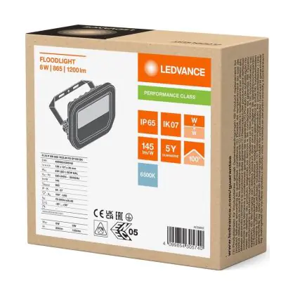 Description Ledvance Projecteur LED Aluminium Noir 8W 1200lm 100D - 865 Lumière Du Jour | IP66 - Symétrique