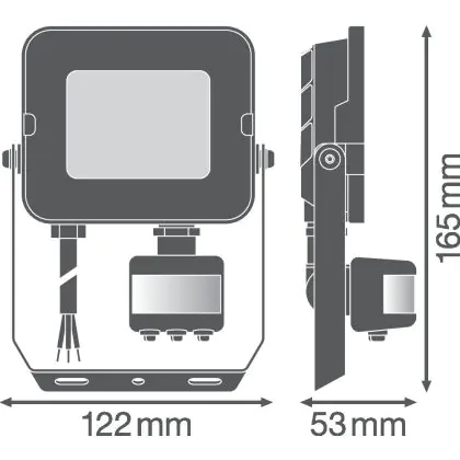 Description Ledvance Projecteur LED Compact Noir 20W 1800lm 100D - 830 Blanc Chaud | IP65 - Symétrique - Détecteur de mouvement et de lumière