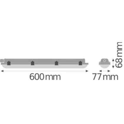 La réglette LED, Ledvance Réglette LED Étanche Imperméable Value 18W 2160lm - 840 Blanc Froid | 60cm est conçue pour remplacer les réglettes TL-D traditionnelles et permettant d’économiser jusqu’à 50% d’énergie. Très souvent utilisé pour l’éclairage d’entrepôts, d’usines, de parking et d’autres grands espaces extérieurs. Très simple d’installation, cette réglette de 60cm peut se fixer au plafond et au mur et projette 4000K - Blanc Froid, comme couleur de lumière. La Ledvance Réglette LED Étanche Imperméable Value 18W 2160lm - 840 Blanc Froid | 60cm dispose d’un indice de protection IP65 – Résistant à la poussière et à l'eau (jets d'eau) à l’eau et la poussière et d’une résistance aux chocs IK08.