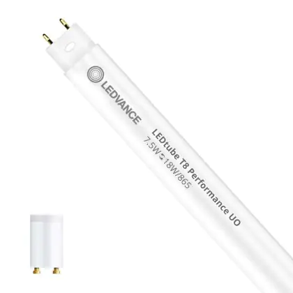 Ce tube LED Ledvance Tube LED T8 Performance (EM/Direct 230V) Ultra Output 7.5W 1100lm - 865 Lumière Du Jour | 60cm - Dimmable - Équivalent 18W est l’un des produits les plus éconergétiques en remplacement des tubes T8 classiques. Avec ce tube LED vous êtes donc assuré de sa qualité. Avec une puissance de seulement 7.5 W, ce tube LED a la même intensité lumineuse qu’un tube classique qui consomme 18 W. P>