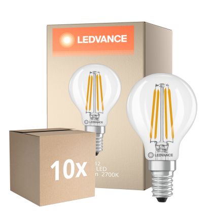 Lot 10x Ledvance Classic LED E14 Poire Filament Claire 3.4W 470lm - 827 Blanc Très Chaud | Équivalent 40W