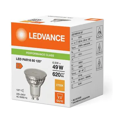 Lot 10x Ledvance Performance Spot LED Réflecteur GU10 PAR16 6.9W 620lm 120D - 827 Blanc Très Chaud | Équivalent 80W