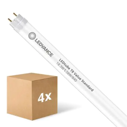 Ce tube LED Lot 10x Ledvance Tube LED T8 Value (EM/Direct 230V) Standard Output 18.3W 2200lm - 840 Blanc Froid | 150cm - Équivalent 58W est l’un des produits les plus éconergétiques en remplacement des tubes T8 classiques. Avec ce tube LED vous êtes donc assuré de sa qualité. Avec une puissance de seulement 18.3 W, ce tube LED a la même intensité lumineuse qu’un tube classique qui consomme 58 W.