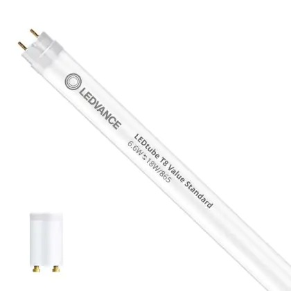 Lot 10x Ledvance Tube LED T8 Value (EM/Direct 230V) Standard Output 6.6W 800lm - 865 Lumière Du Jour | 60cm - Équivalent 18W