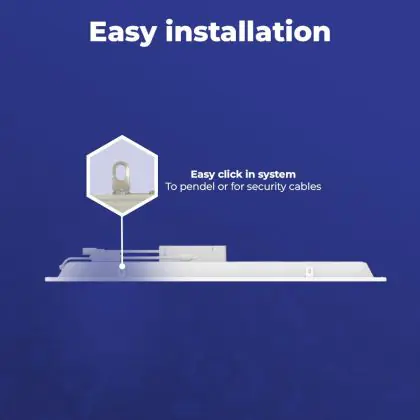 Les dimensions les plus courantes des panneaux LED sont 60x60cm (carrés) et 30x120cm (rectangulaires). Ce sont des tailles standard pour presque tous les plafonds/ des plafonds à grille. D'autres dimensions sont également disponibles, telles que 20x120cm ou 15x150cm.