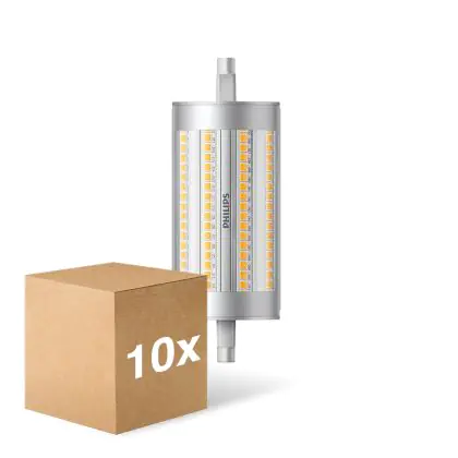 Lot 10x Philips Corepro LED Lineair R7s 118mm 17.5W 2460lm - 830 Blanc Chaud | Dimmable - Équivalent 150W est une ampoule tubulaire linéaire à double extrémité. Ce type d’ampoule permet de délivrer une lumière homogène à 360° avec comme température de couleur 3000K - Blanc Chaud. Cette ampoule LED R7s de chez Philips est la solution idéale pour le remplacement de vos anciennes ampoules halogènes. Cette ampoule LED n’a pas besoin de transformateur, elle fonctionne avec 230V et peut se connecter directement sur le secteur électrique.
