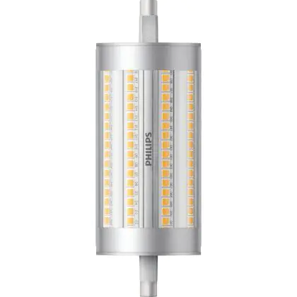 Lot 10x Philips Corepro LED Lineair R7s 118mm 17.5W 2460lm - 840 Blanc Froid | Dimmable - Équivalent 150W est une ampoule tubulaire linéaire à double extrémité. Ce type d’ampoule permet de délivrer une lumière homogène à 360° avec comme température de couleur 4000K - Blanc Froid. Cette ampoule LED R7s de chez Philips est la solution idéale pour le remplacement de vos anciennes ampoules halogènes. Cette ampoule LED n’a pas besoin de transformateur, elle fonctionne avec 230V et peut se connecter directement sur le secteur électrique.