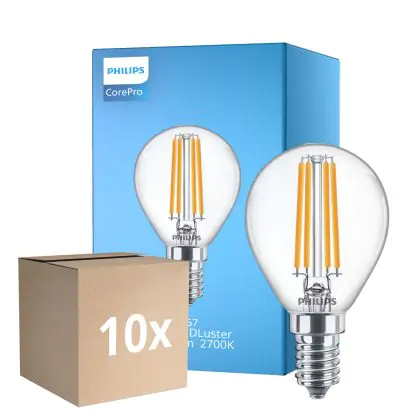 Lot 10x Philips Corepro LED Lustre E14 Boule Filament Claire 6.5W 806lm - 827 Blanc Très Chaud | Équivalent 60W