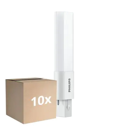 Cette ampoule Lot 10x Philips CorePro PL-S LED 3.5W - 840 Blanc Froid | 2-Pins - Équivalent 7W est l’alternative idéale de l’ampoule PL-S conventionnelle. Cette ampoule CFL LED de Philips se caractérise par une faible consommation d’énergie (3.5 W). Cette lampe LED CFL présente l’avantage de pouvoir diffuser la lumière de manière uniforme. De plus, cette lampe LED a une longue durée de vie et une utilisation énergétique plus responsable que son homologue CFL. Elle remplace en effet les lampes CFL d’une puissance de 7 W.