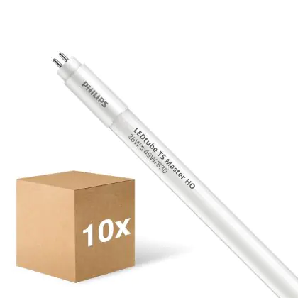 Ce tube LED Lot 10x Philips Tube LED T5 MASTER (Direct 230V) High Output 26W 3600lm - 830 Blanc Chaud | 145cm - Équivalent 49W est l’un des produits les plus éconergétiques en remplacement des tubes T5 classiques. Ce tube LED est produit par Philips, vous êtes donc assuré de sa qualité. Avec une puissance de seulement 26 W, ce tube LED Philips a la même intensité lumineuse qu’un tube classique qui consomme 49 W. P>