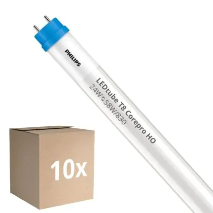 Lot 10x Philips Tube LED T8 CorePro (EM/Direct 230V) High Output 24W 2500lm - 830 Blanc Chaud | 150cm - Équivalent 58W