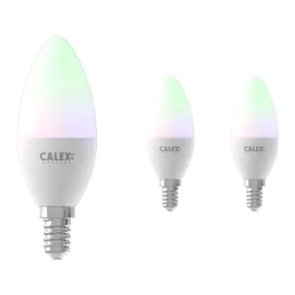 Description Lot 3x Calex Smart Tuya Wifi E14 Bougie 5W 470lm - 822-840 Variable Blanc | RGBW - Dimmable - Équivalent 40W