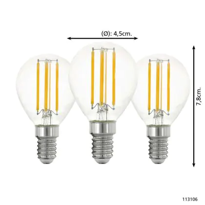 Description Lot 3x Eglo LED Boule E14 Filament Claire 21W 806lm - 827 Blanc Très Chaud | Équivalent 60W