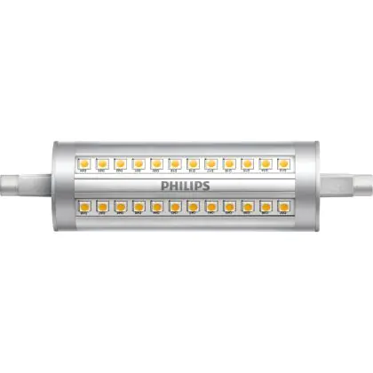 Lot 4x Philips Corepro LED Lineair R7s 118mm 14W 2000lm - 840 Blanc Froid | Dimmable - Équivalent 120W est une ampoule tubulaire linéaire à double extrémité. Ce type d’ampoule permet de délivrer une lumière homogène à 360° avec comme température de couleur 4000K - Blanc Froid. Cette ampoule LED R7s de chez Philips est la solution idéale pour le remplacement de vos anciennes ampoules halogènes. Cette ampoule LED n’a pas besoin de transformateur, elle fonctionne avec 230V et peut se connecter directement sur le secteur électrique.