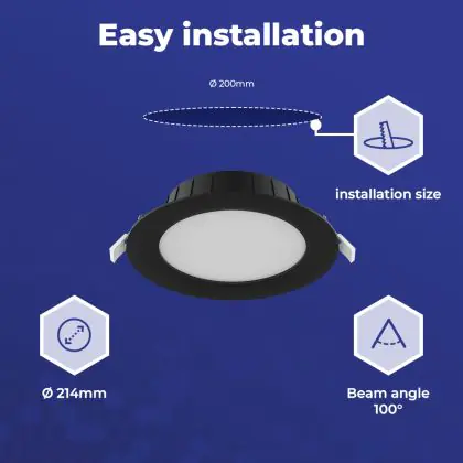 | Nom du fabricant | Noxion LED Downlight Hera Flat Black 21W 2400lm - 827-830-840 CCT | 214mm - Cutout 200mm | |