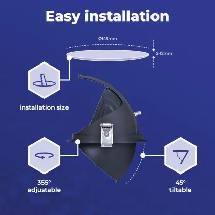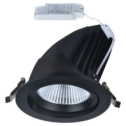 Les spots LED encastrables (aussi appelés Downlights) sont des solution éco-énergétiques permettant de remplacer les spots classiques équipés de technologie à fluorescence. Ce downlight Noxion Spot LED Forza V2 Aluminium Noir 28/32/36/40W - 3300/3700/4100/4500lm 36D - 930-940-957 CCT | 160mm - Diamètre 145mm - Meilleur Rendu Des Couleurs est conçu pour remplacer un spot classique de 70. La consommation de ce downlight LED est considérablement plus faible qu’un luminaire classique, à savoir, seulement 40 watts. Une économie d’énergie sans compromettre la qualité de la lumière. Le flux lumineux est de 4500 lumens. La lumière de ce downlight LED est diffusé à 36 degrés et offre un bon rendu des couleurs. La durée de vie moyenne de ce luminaire LED est de 60000 heures.