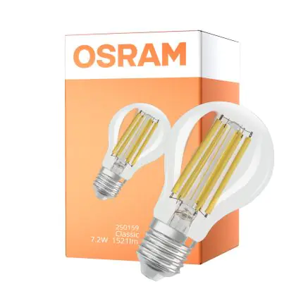 Cette ampoule Osram Classic LED E27 Poire Filament Claire 7.2W 1521lm Ultra Efficiency - 840 Blanc Froid | Équivalent 100W avec son efficacité lumineuse de lumen par watt vous permettra de profiter d’un éclairage de qualité. Avec sa durée de vie de 50000 heures, vous n’aurez pas à vous soucier de son remplacement avant quelques années.