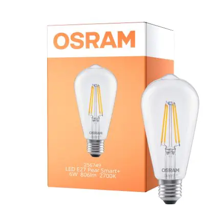Description Osram Smart+ Matter E27 Edison Filament Claire 6W 806lm - 827 Blanc Très Chaud | Dimmable - Via Smart Device Only - Équivalent 60W
