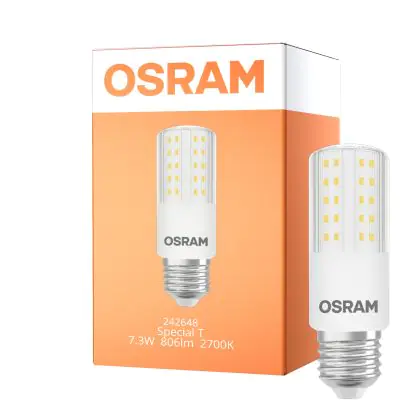 Description Osram Special T Slim LED E27 Claire 7.3W 806lm - 827 Blanc Très Chaud | Dimmable - Équivalent 60W