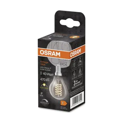 Cette ampoule rétro Osram Vintage 1906 LED Classic Slim E14 Poire Filament Claire 4.8W 470lm - 827 Blanc Très Chaud | Dimmable - Équivalent 40W est l’alternative idéale pour la remplacement de votre ampoule classique de 40 W. La technologie LED intégrée vous offrira de nombreux avantages. Les ampoules à incandescence traditionnelles ont une durée de vie limitée. Cette alternative LED vous permettra de profiter d’un éclairage durable et fiable.