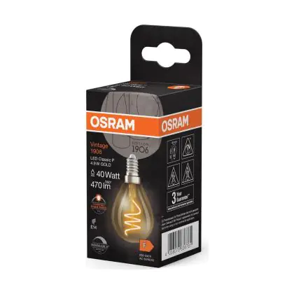 Cette ampoule rétro Osram Vintage 1906 LED Classic Slim E14 Poire Filament Dorée 4.9W 470lm - 922 Blanc Très Chaud | Meilleur Rendu Des Couleurs - Dimmable - Équivalent 40W est l’alternative idéale pour la remplacement de votre ampoule classique de 40 W. La technologie LED intégrée vous offrira de nombreux avantages. Les ampoules à incandescence traditionnelles ont une durée de vie limitée. Cette alternative LED vous permettra de profiter d’un éclairage durable et fiable.