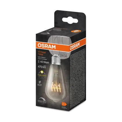 Cette ampoule Osram Vintage 1906 LED E27 Edison Filament Claire 4.8W 470lm - 827 Blanc Très Chaud | Dimmable - Équivalent 40W est l’alternative idéale pour la remplacement de votre ampoule classique de 40 W. La technologie LED intégrée vous offrira de nombreux avantages. Les ampoules à incandescence traditionnelles ont une durée de vie limitée. Cette alternative LED vous permettra de profiter d’un éclairage durable et fiable.